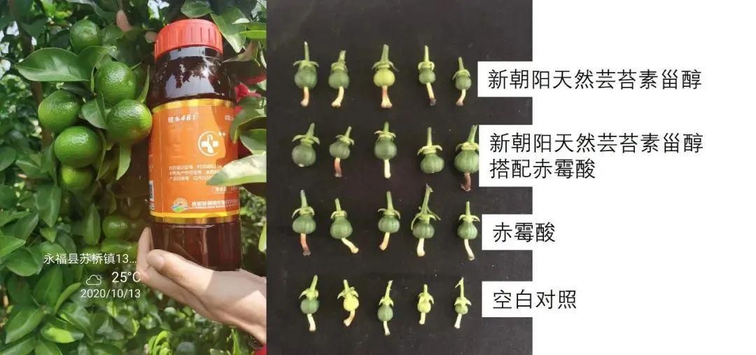 第2次生理落果(蜜盤脫落)期一般在第1次落果后15天開始,主要是由于冬季樹勢衰弱,春季管理不及時,或夏梢生長勢過旺,發生枝、果爭奪養分等原因引起的。此外,光照不足、高溫干旱、積水和嚴重的病蟲害等也會削弱樹勢,加劇落果。小編推薦:使用天然蕓苔素碩豐481?2000倍+速效硼+920噴霧,此方案施用后座果率比單用920高20%;幼果、果梗提前3天轉綠,大小果分果快。