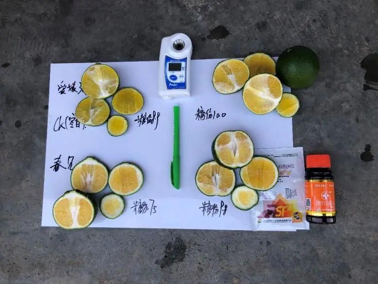 除了溫度、光照會影響果實糖分積累以外,營養的補充和調節劑的使用也決定著果實糖度和著色程度。尤其針對四川晚熟雜柑到后期氣溫慢慢的降低,普通蕓苔素吸收率利用率會大打折扣,而天然蕓苔素能提高作物的光合作用效率,在低溫下吸收利用率高,能夠低溫條件下促進養分、色素和糖分的合成與積累。